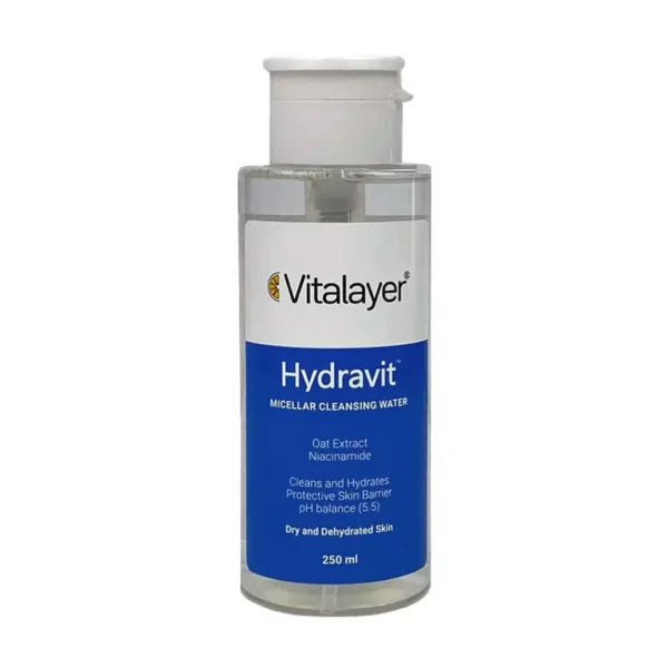 آبرسانی و مرطوب کنندگی: میسلار واتر هیدراویت ویتالیر با دارا بودن ترکیبات آبرسان مانند گلیسرین و هیالورونات سدیم، رطوبت مورد نیاز پوست را تامین کرده و از خشکی و دهیدراتاسیون آن جلوگیری می کند.